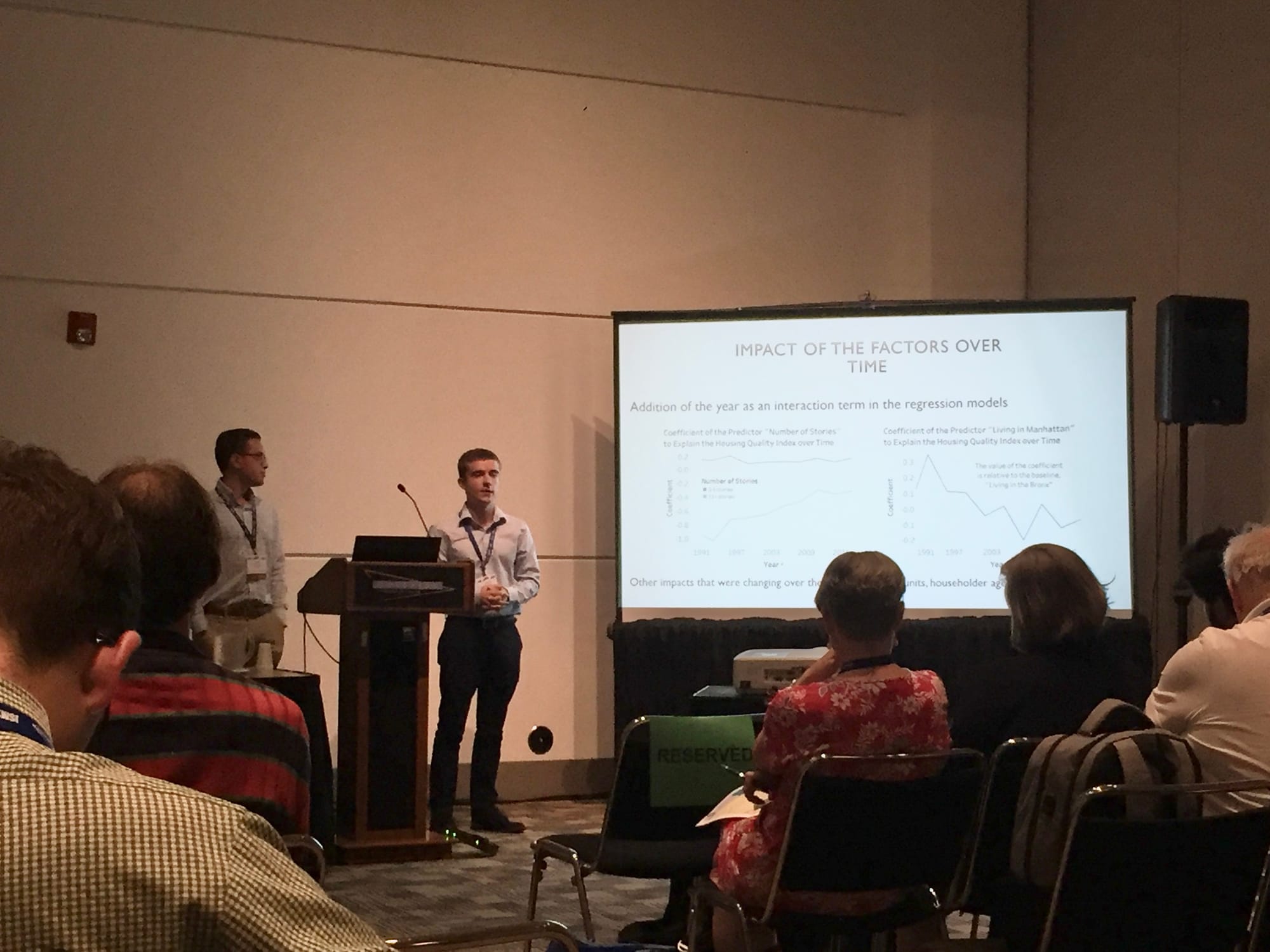 C'est durant cette année que je découvre le Machine Learning, la base de l'IA. Pour un cours, on a même recréé "Les Experts" en prédisant des crimes grâce à l'IA. Je participe aussi à un concours d'analyse de données sur la qualité de vie des New-Yorkais. Notre solution décroche la 2ème place au sommet de l'American Statistical Association à Denver. (Le petit Damien qui n'osait pas réciter ses poésies en primaire se retrouve à présenter devant 100 experts). La cerise sur le gâteau ? Une publication dans une revue scientifique Springer.